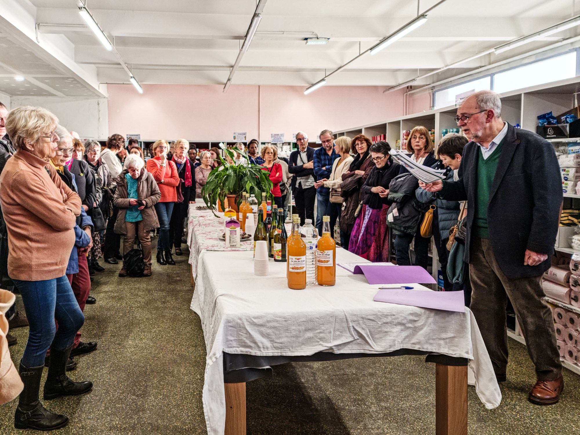 Dans son discours traditionnel, le Président rappelle, devant les invités, les salariés, les adhérents et bénévoles, l'objet de l'association Le Maillon: l'épicerie sociale permettant aux déshérités de se procurer des produits alimentaires, de première nécessité, ménager et aussi pour la petite enfance grâce, notamment, aux collectes alimentaires, aux dons d'entreprises et de particuliers, aux fruits et légumes servis par le Chantier d'Insertion Les Jardins du Maillon. Et, aussi les autres Chantiers d'Insertion, La Couture et La repasserie sont mis en valeur ainsi que les Espaces de Solidarité, Meubles, vêtements et Livres et Jouets. Ceux-ci permettent la réinsertion de salariés embauchés en Cddi pour un futur retour sur le marché de l'emploi.